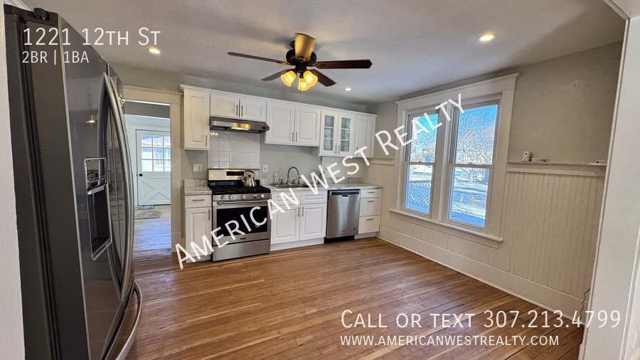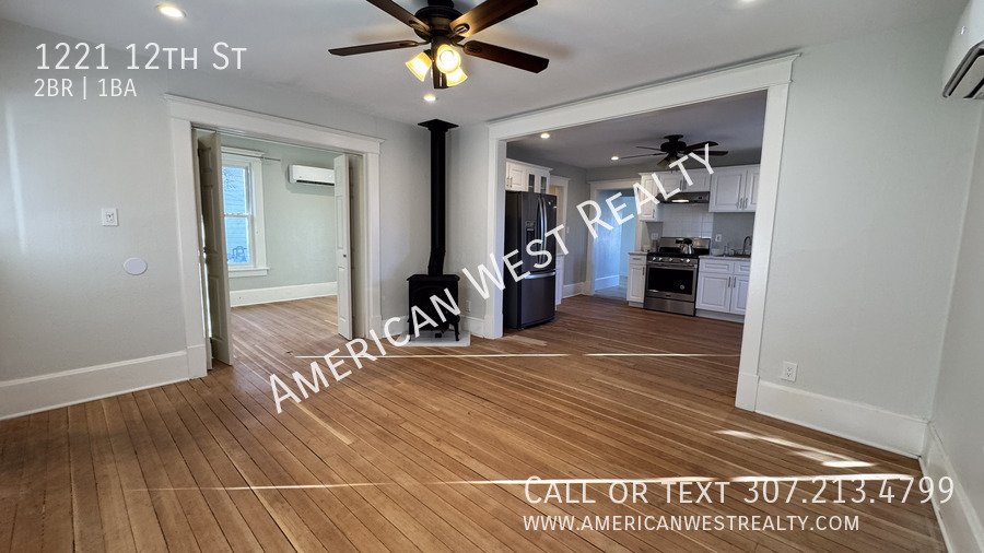 This charming two-bedroom, one-bath historic home is located just one block south of downtown Cody, offering easy access to boutique shopping, restaurants, and parks. The remodeled interior highlights original fir floors, newer windows, and a cozy living space with a new gas fireplace. Enjoy hardwood and tile floors throughout, a bright updated kitchen with a newer fridge, stove, and dishwasher, and an enclosed back porch for added space. Three mini-splits provide efficient air conditioning, while the large front porch offers a welcoming outdoor retreat. Additional conveniences include off-street parking. No pets. No smoking. Tenant responsible for establishing and maintaining utilities with City of Cody and Black Hills Energy. 6-month lease Only!