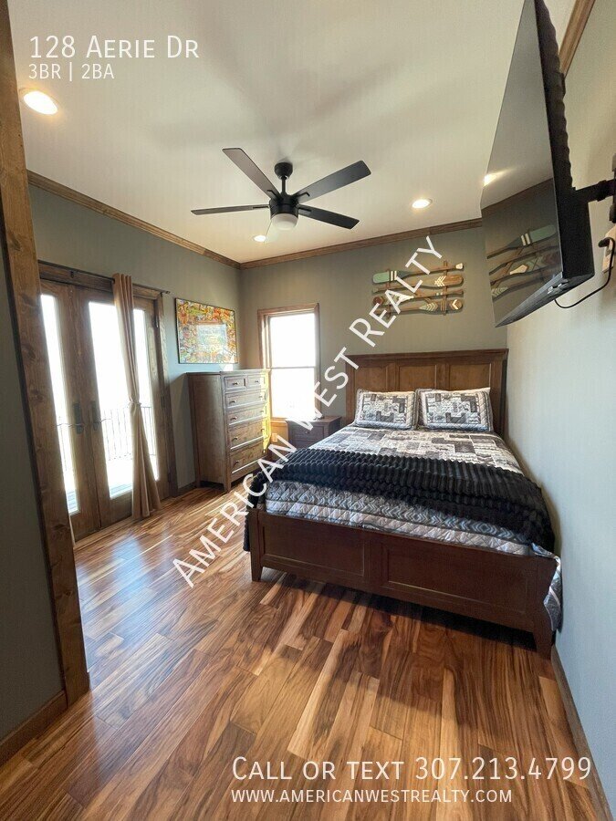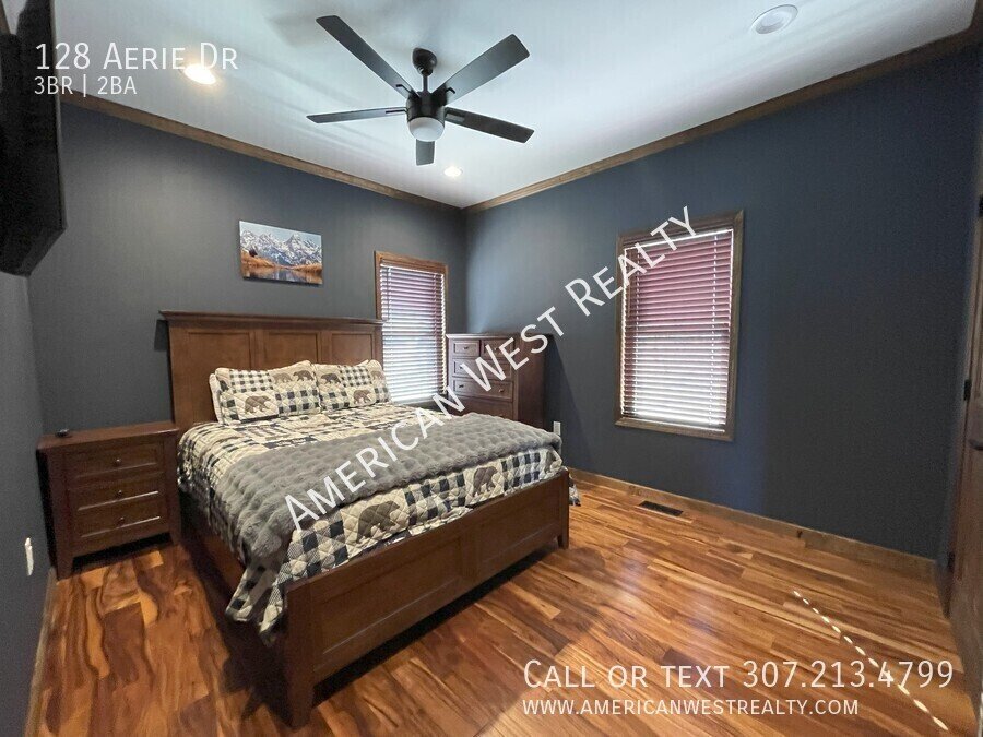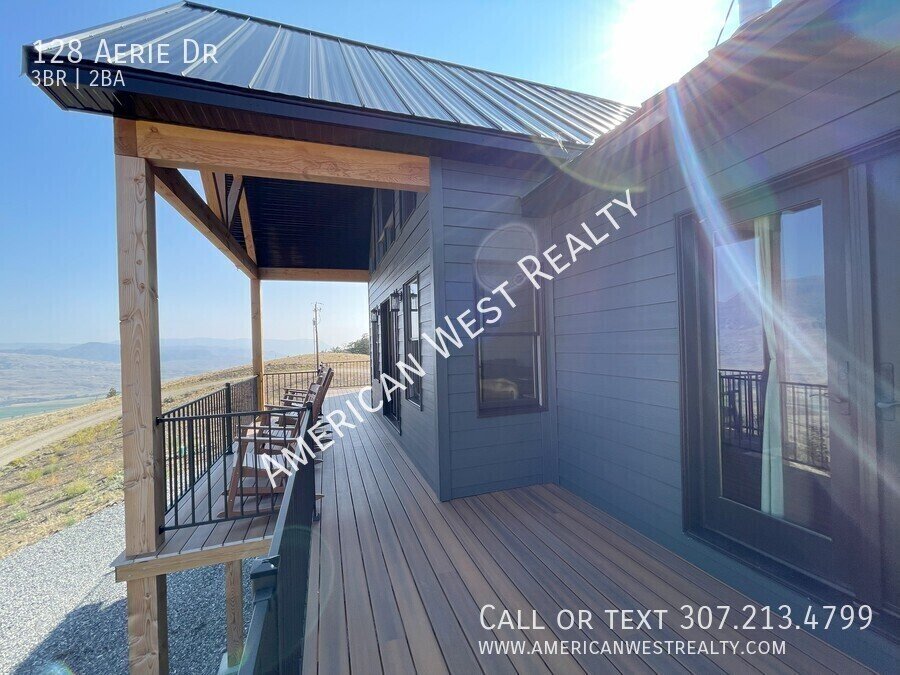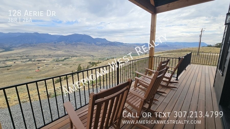 Stunning views year-round from this like-new 3bed/2bath home with garage and storage space. The home is fully furnished (as pictured)! The open floor plan has recessed lighting, vaulted ceilings, lots of natural light. You'll immediately notice the beautiful kitchen with granite countertops, steel appliances, a large island with breakfast bar, and abundant storage. The living room is well furnished and tasteful. Cozy up in front of the fireplace while watching your favorite movie streamed from the included StarLink internet system (included) or step out onto the spacious deck overlooking Wapiti valley for your favorite beverage and million-dollar views. The primary bedroom features two closets, a beautiful en-suite bathroom, and a door that leads directly out to the deck. There are two more bedrooms and a full bath on the opposite side of the house. The bottom floor includes a one-car garage with an opener, a storage room, and an interior spiral staircase leading to the main floor. Forced air heat, air conditioning, gas fireplace. StarLink internet with speeds up to 100 Mbps. Tenant will be responsible for utilities.