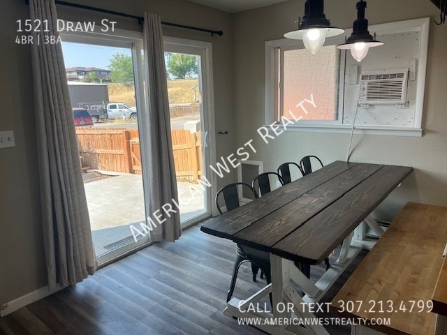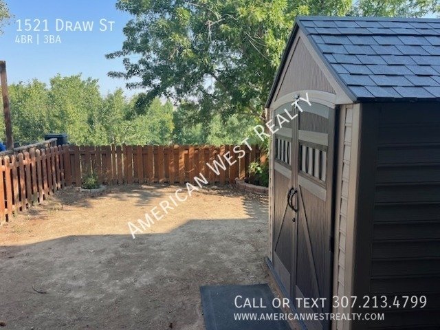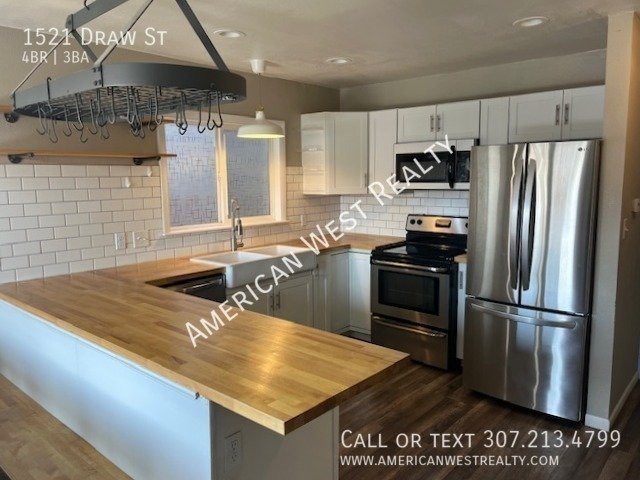 Nice 4 bed and 3 bath, 2 story townhouse close to downtown, rec center, and shopping. Beautiful kitchen with stainless steel appliances. Washer and Dryer included. Beautiful laminate floors on main level and top floor, and most of basement. Main floor includes living room, kitchen, dining room, and a half bath. The sliding glass door in front leaves to a nice patio, and the back sliding door leads to the back yard and storage shed. The upper level has three bedrooms and a full bath. The basement is finished with a family room, bathroom, laundry, and the fourth bedroom. No smoking. Tenants will be responsible for City of Cody (Electric, Water, Sewer & Trash) & Black Hills Energy (Gas). Owner is willing to do 6 month lease or yearly leases.