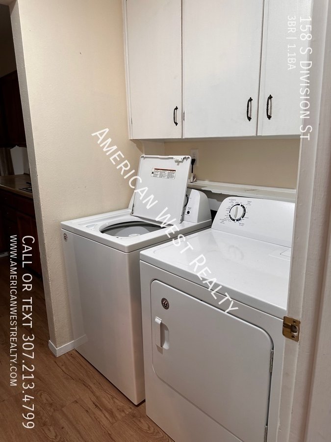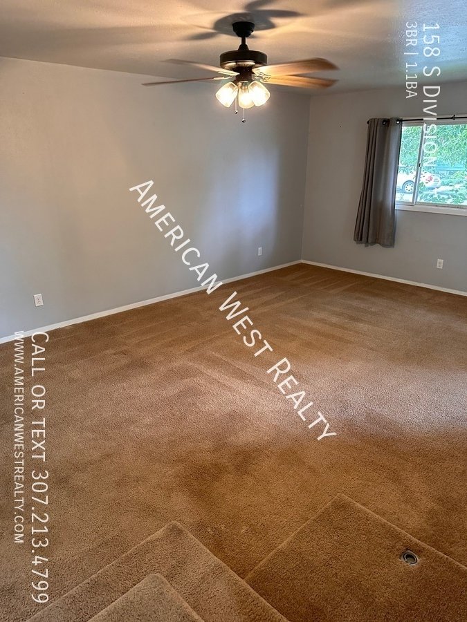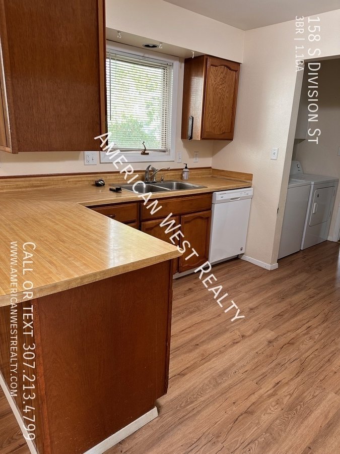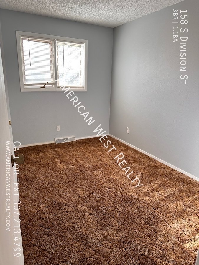 Favorable home in a nice residential area of Powell. Recently renovated with new flooring and paint. Three bedrooms and a full bath on one end of the home. Living room, dining, kitchen, laundry, and a half bathroom in the middle of the home. Kitchen includes fridge, stove, and dishwasher. Laundry room includes a newer washer and dryer. Bonus family room next to the garage. The garage includes a walk-out door to the fenced side yard and some built-in storage. A small dog is negotiable but no cats allowed. No smoking. Tenant pays their own utilities with City of Powell and Montana Dakota Utilities.